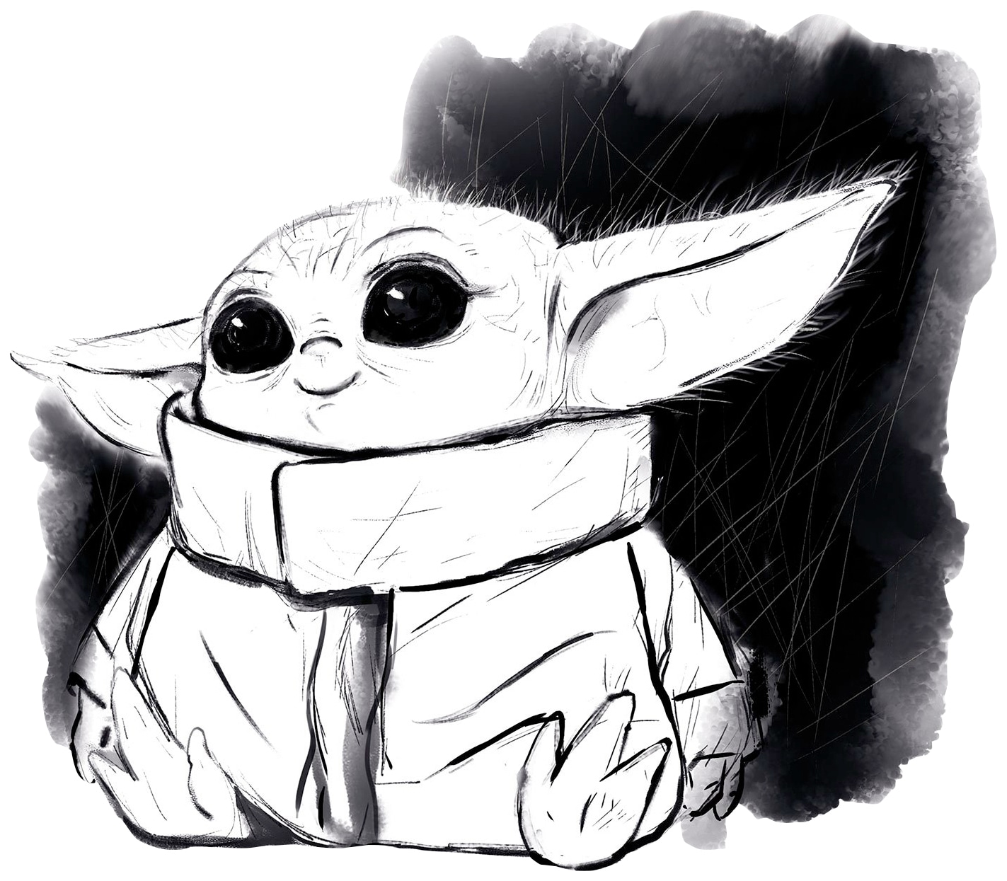 Bild KOMAR "Mandalorian The Child Sweet Black White", bunt (farbe bild(er): bunt), B:50cm H:40cm, Holz, Papier, Bilder, Wandbild zur Dekoration im Kinderzimmer - ohne Rahmen
