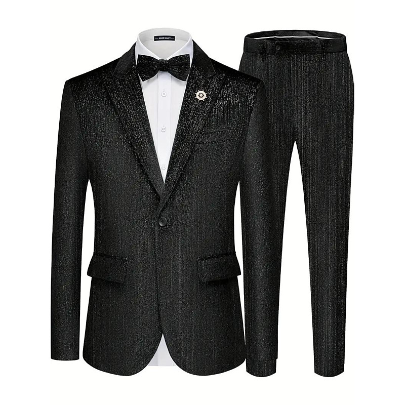 Men's Wedding Casual Party Suits Peaked Lapel Black Jade Formal Solid Colored Slim Fit 1 Piece Single Breasted One-button
