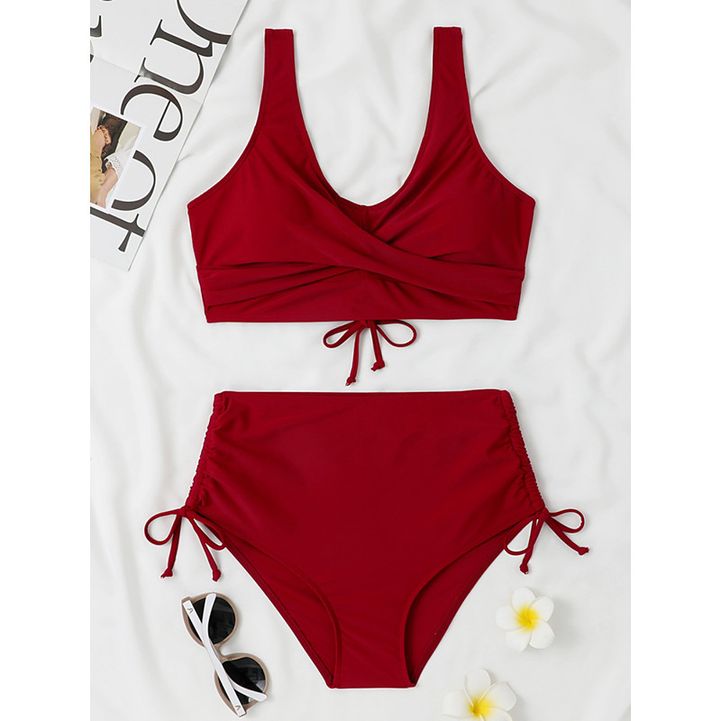 Women's Normal Swimwear Bikini 2 Piece trikini Thong Swimsuit 2 Piece Open Back Sexy Vacation Beach Wear Pure Color Strap Bathing Suits