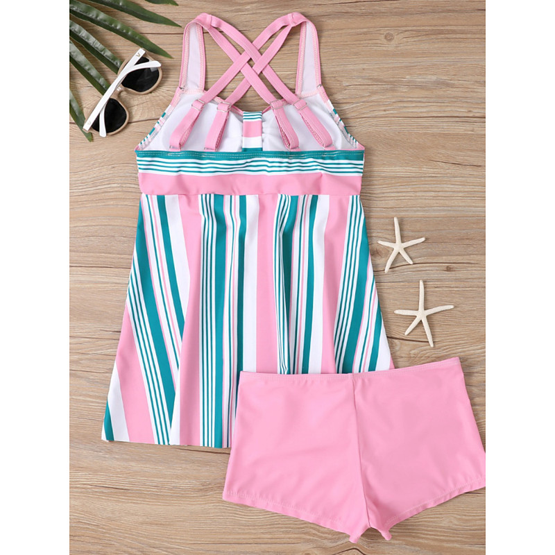 Women's Tankini 2 Piece Swimsuit Cheeky Tummy Control High Waist Slim Backless Vacation Beach Wear Graphic Color Block V Neck Sleeveless Bathing Suits