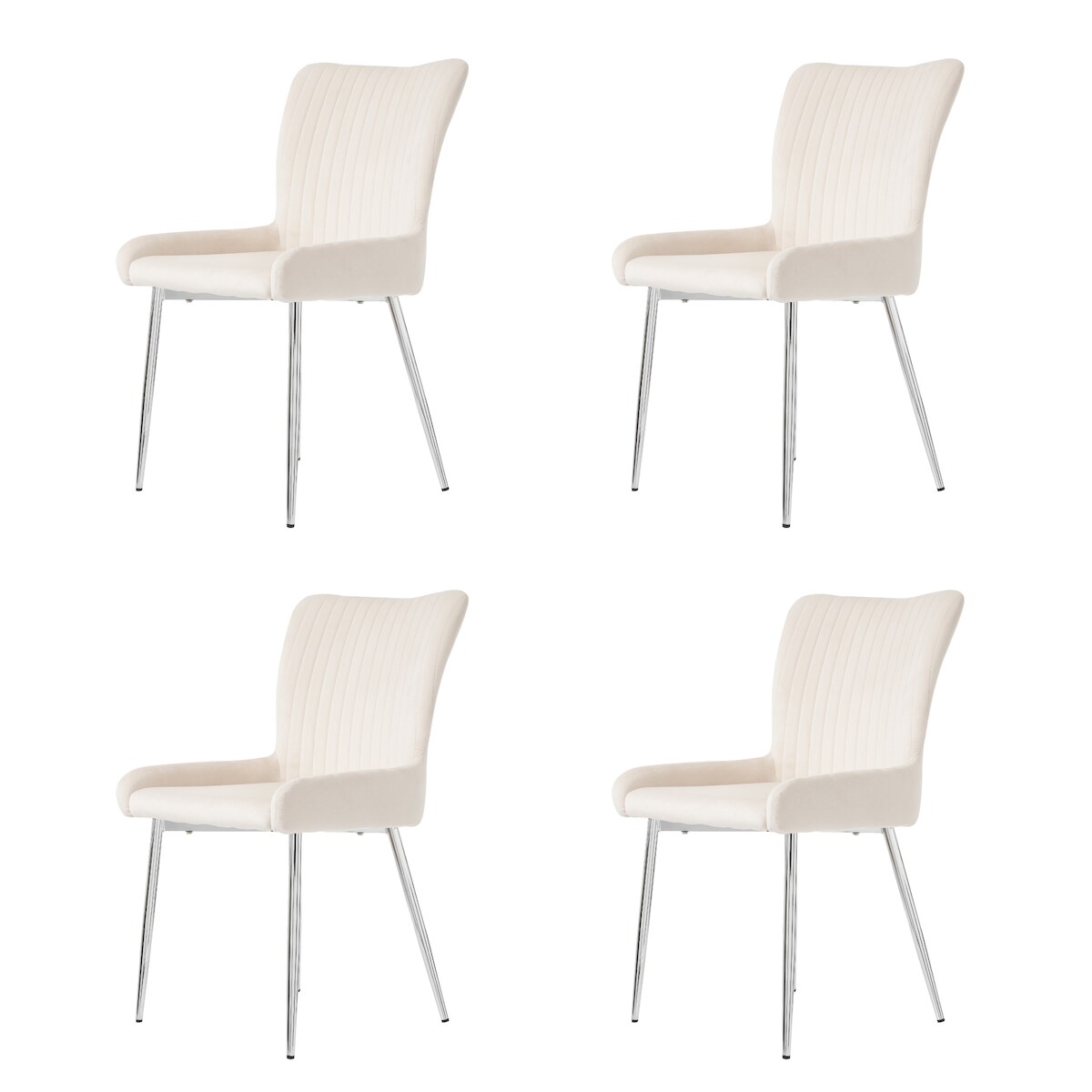 Merax Samt-Esszimmerstuhl, 4er-Set, Wohnzimmer, Schlafzimmer, Lounge-Stuhl mit vier Silberne Metallstützbeinen, Lendenwirbelstütze, Beige