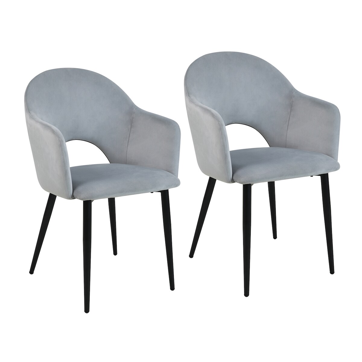 SVITA HAILEY 2er Set Esszimmerstühle Küchen-Sessel gepolstert Samt Grau