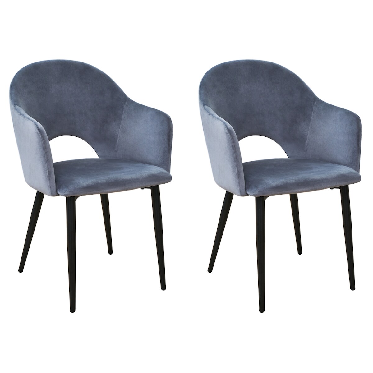 SVITA HAILEY 2er Set Esszimmerstühle Küchen-Sessel gepolstert Samt Dunkelgrau