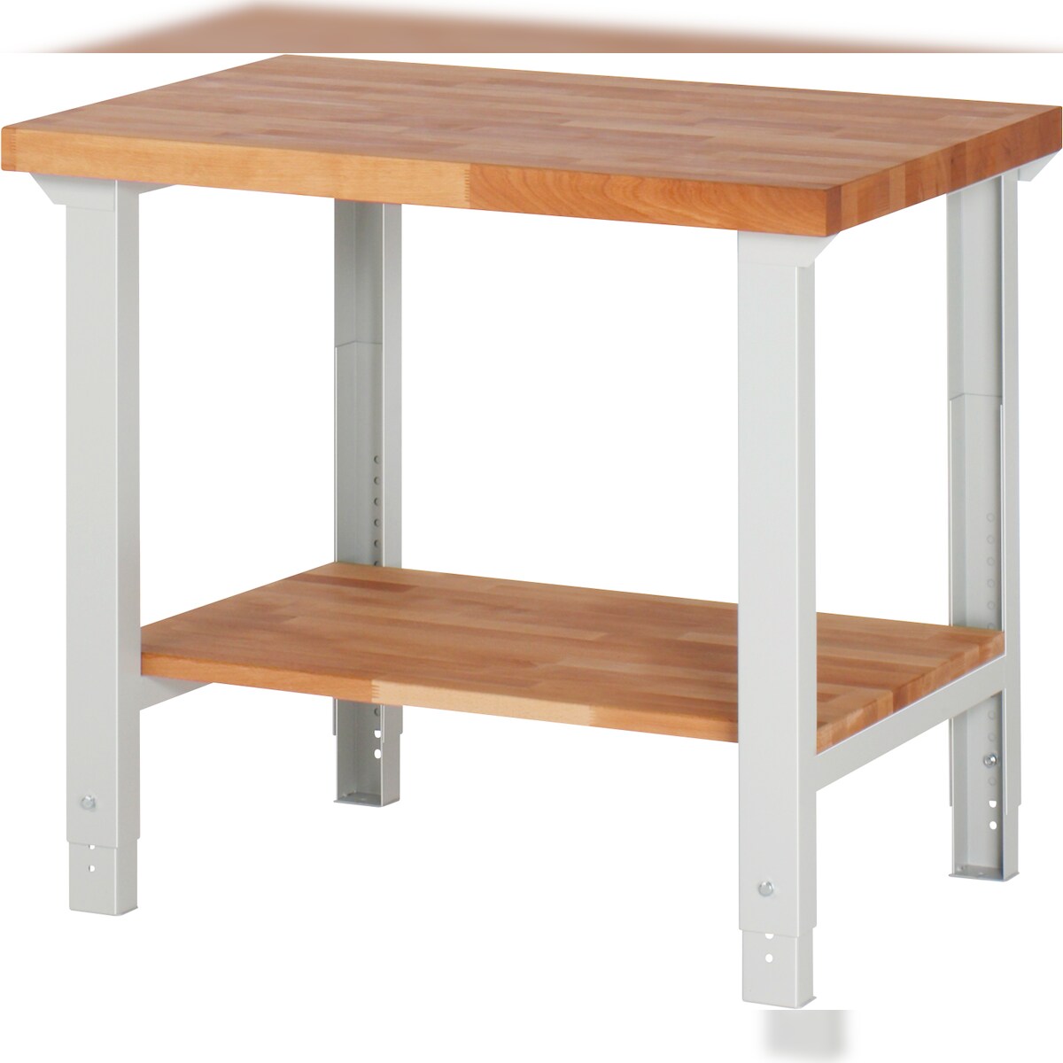PROREGAL Werkbank Serie 7000 - Modell 7000 | HxBxT 79-114x100x70cm | mit Ablageboden | Lichtgrau | Arbeitstisch Werktisch