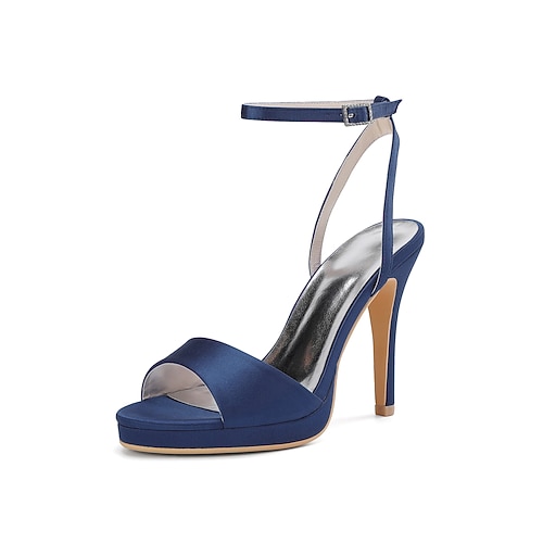sandali con tacco alto e plateau color carne da donna, scarpe eleganti con tacco a blocco spesso per gli invitati ai matrimoni in città