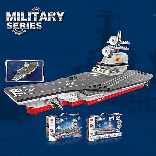 Compatibile con Portaerei Militare Distruttore Piccole Parti Puzzle Assemblea Giocattolo per Bambini Scatola Regalo Blocchi da Costruzione Regalo di Natale