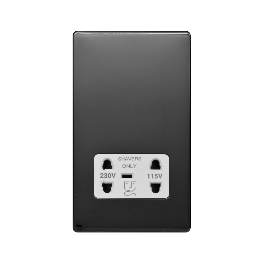 Lieber Black Nickel & White Shaver Socket 230/115V Plate - Screwless - Size: 146mm x 86mm x 4.7 mm
