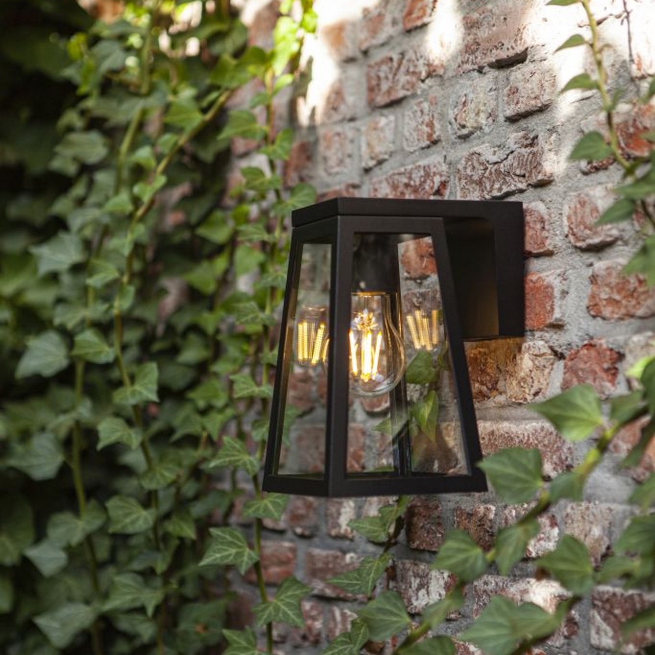 Lutec Fia - Solar-Wandleuchte für den Außenbereich - 16,4 x 14 x 20,7cm - 2W E27 Glühbirne enthalten - IP44 - mattschwarz