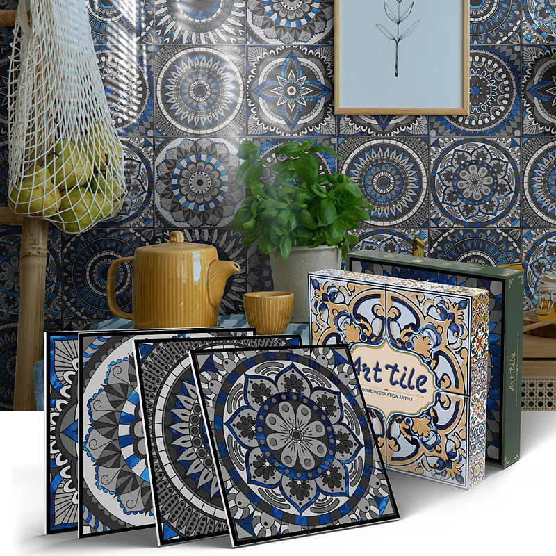 24pcs Creative Kitchen Bathroom Living Room Self-adhesive Wall Stickers Waterproof Fashion Blue Tile Stickers