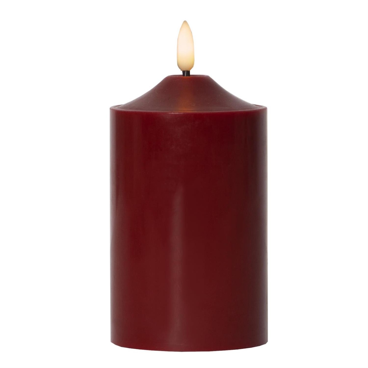 LED Kerze Flamme Echtwachs 3D Flamme H: 15cm, D: 7,5cm Batterie Timer rot