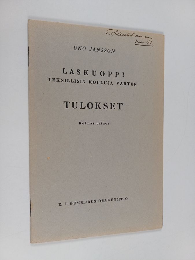 Uno Jansson : Laskuoppi teknillisiä kouluja varten : tulokset