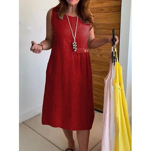 Per donna Abito Midi Vestito Estivo Vacanza Casual Boho Ferie Abito Estivo Abito Primaverile Vestibilità comoda Semplice Senza Maniche Girocollo Blu Giallo Rosso Marrone chiaro Estate Primavera