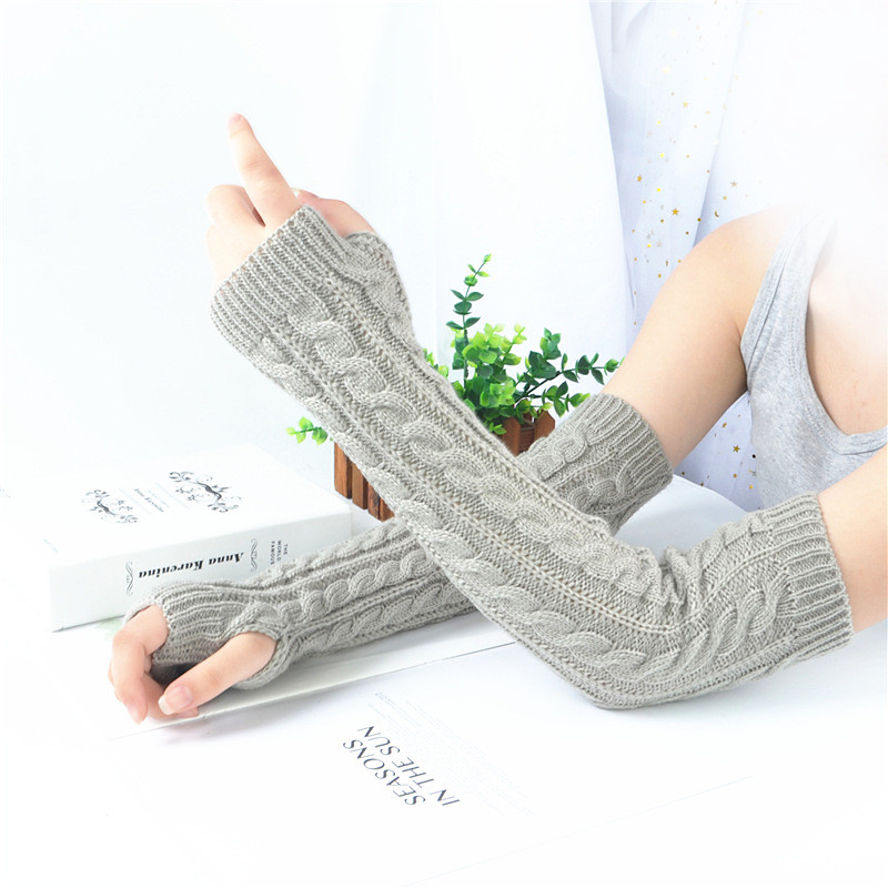 Women Long Winter Knitted Arm Sleeves, Fingerless Acrylic Gloves, Warm Handless Knitwear for Fall and Winter, Long Arm Warmers