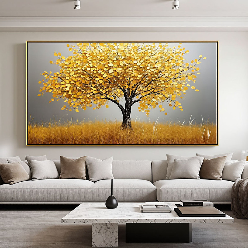 Abstract Golden Big Tree Oil Painting on Canvas Large Textured Wall Art Original Tree of Life Painting Custom Living Room Home Decor Gift