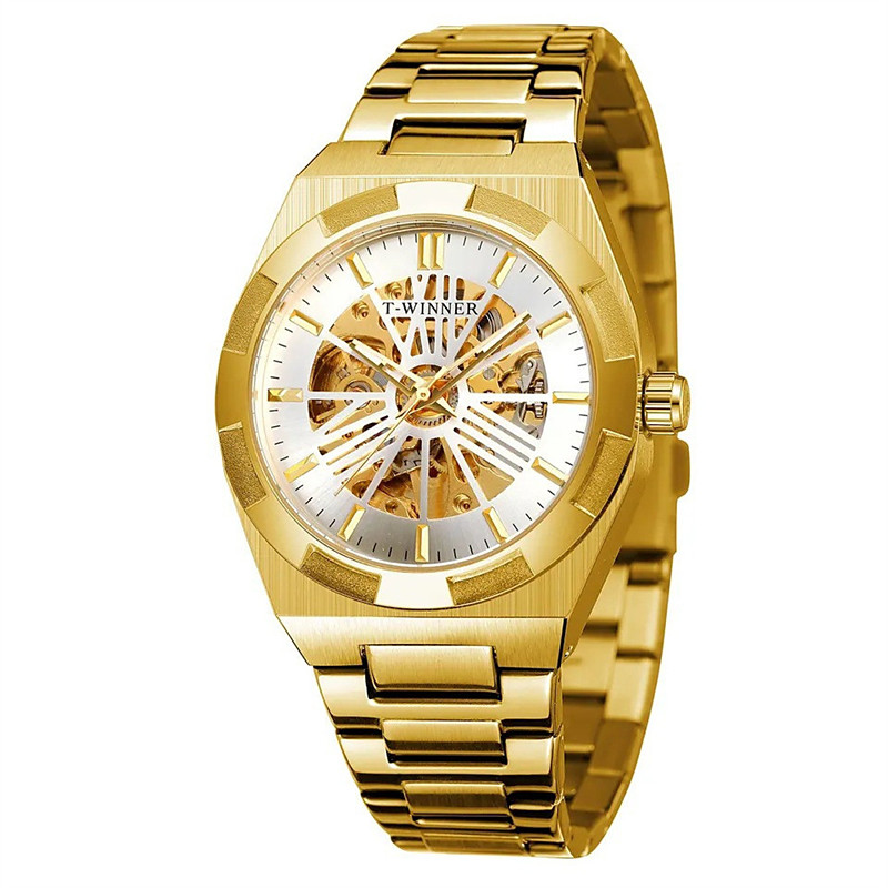 WINNER Men Mechanical Watch Luxury Large Dial Fashion Business Hollow Skeleton Automatic Self-winding Waterproof Stainless Steel Strap Watch