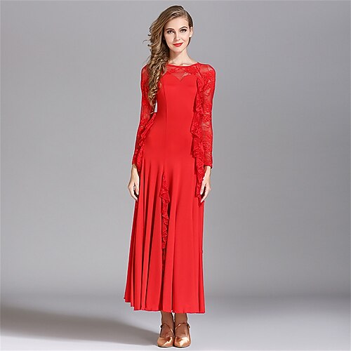 Balli da sala Abito Ricamo Con balze strutturate Paillettes Per donna Prestazioni Manica lunga Seta sintetica