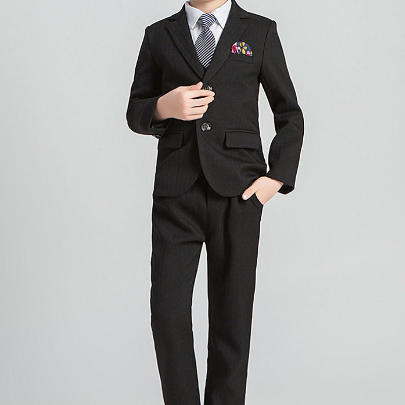 4 Pieces Ring Bearer Suit Boys Kids Suit Formal Suit Suit Blazer Clothing Set School Formal Fashion Basic Formal Stripe Patchwork Black Gray Cotton