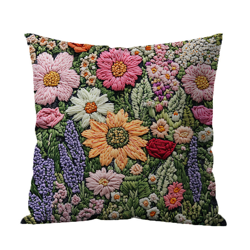 Floral Pattern Pillow Cover 2D Flat Print Soft Comfortable Cushion Case with Faux embroidery for Living Room Sofa Bedroom Home Decoration