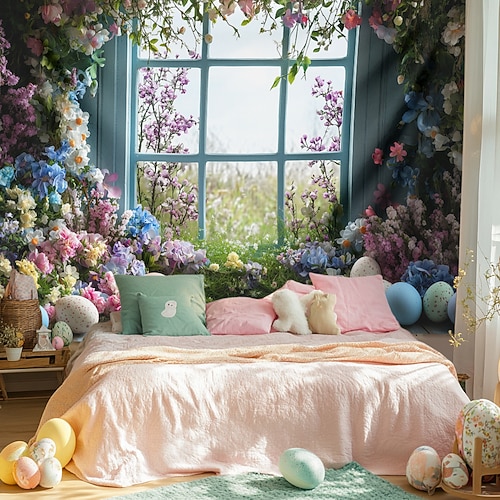 Arazzo appeso Uova Coniglio Arte murale Grande arazzo Decorazione murale Fotografia Sfondo Coperta Tenda Decorazione per casa Camera da letto Soggiorno