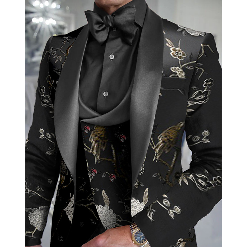 Men's Wedding Prom Party Suits Shawl Lapel Black Fashion Luxury Jacquard Floral Standard Fit 2 Piece Single Breasted One-button