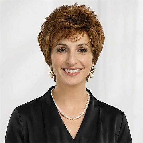 parrucca bionda corta ed elegante da donna, con volume soffice e strati leggeri