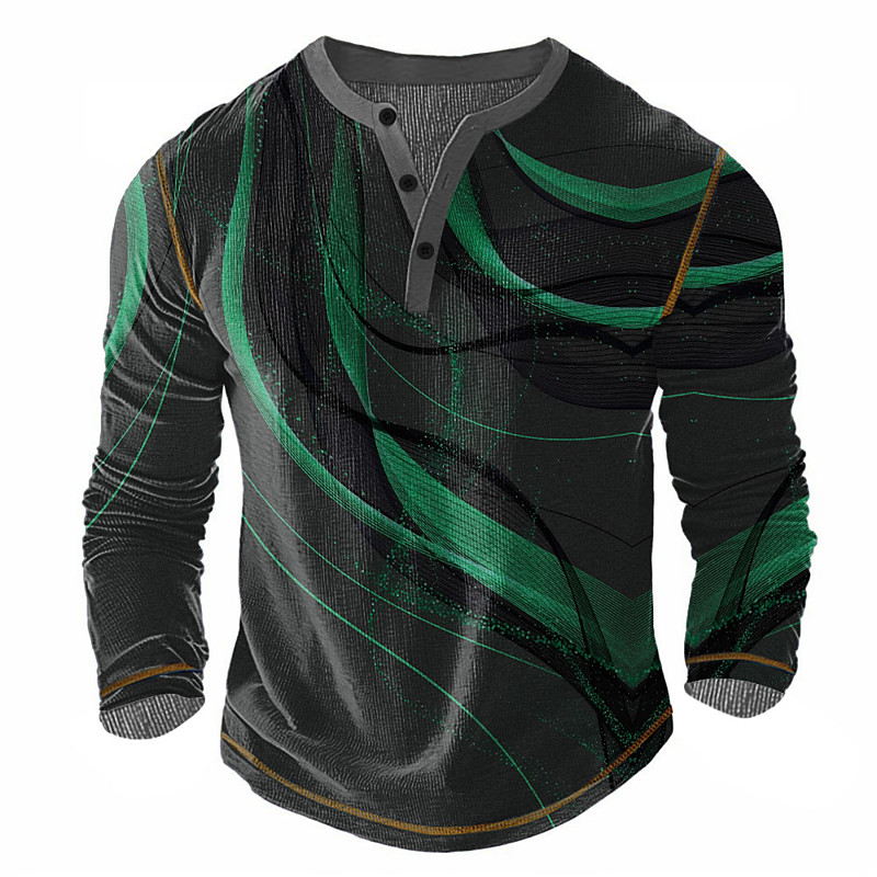 Men's Abstract Henley Shirt Waffle T Shirt Long Sleeve Vintage Daily Retro Vintage Sports Outdoor Casual Holiday Spring Summer All Seasons Blue Yellow Green Red Grey Henley Henley T-Shirt