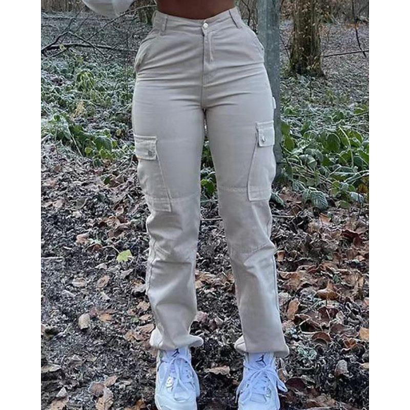 Women's Jeans Chinos Streetwear Casual Full Length Medium Waist Plain Pocket Elastic Waist Comfortable Micro-elastic Outdoor Vacation Daily Grey Black Light Green Dark Navy Summer Spring Loose Fit