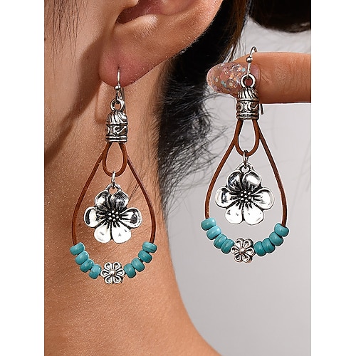 orecchini pendenti floreali boho da donna – orecchini pendenti in stile western con perline turchesi per festival estivi, feste e abiti quotidiani