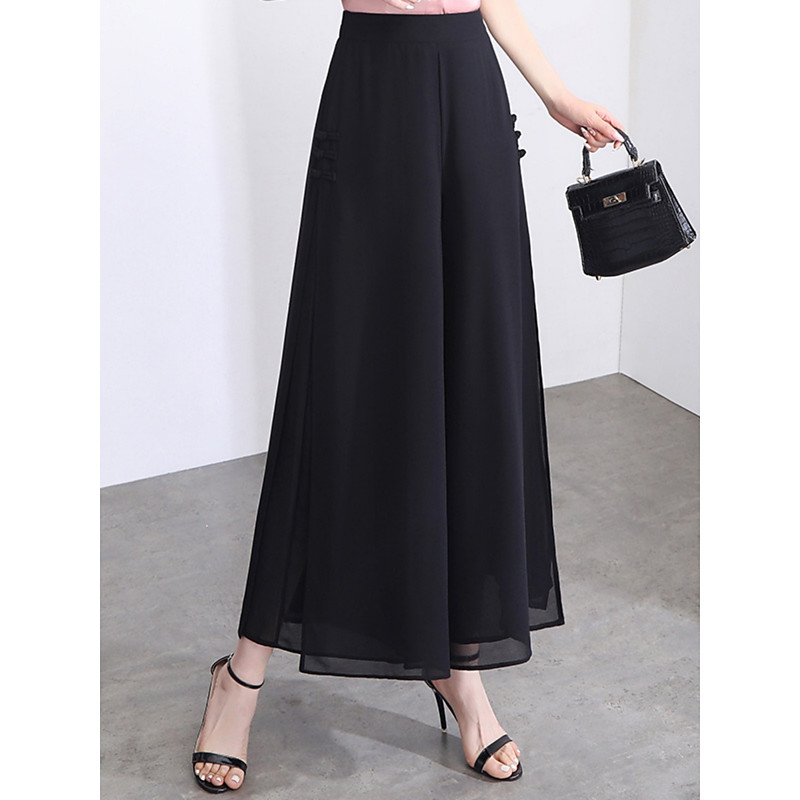 Women's Wide Leg Chinos Vacation Vintage Fashion Full Length Medium Waist Plain Lace Ruffle Patchwork Comfortable Micro-elastic Outdoor Vacation Party Black Summer Spring Fall Winter Regular Fit