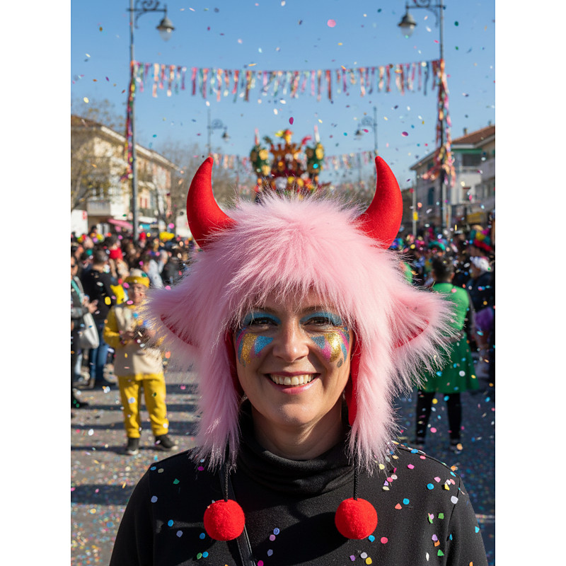 Women's Black and Red Devil Horns Mardi Gras Hat with Pom Poms – Fun, Fluffy Costume Mardi Gras Hat for Carnival, Festivals, and Themed Events