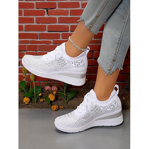 Damen Mardi Gras Strass Schnür-Sneaker klobige Karneval-Partyschuhe