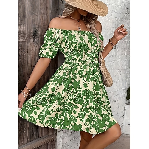 Per donna Mini Abito Abito a trapezio Casual All'aperto Uscire Vestibilità standard Floreale Grafico Manica Corta Senza Spalle Blu Rosso Verde Beige Estate Primavera