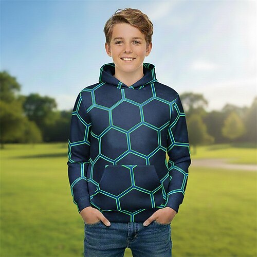 Jungen 3D Grafik Geometrisch Kapuzensweatshirt Langarm Frühling Herbst Mode Streetwear Kinder 4-12 Jahre Mit Kapuze Outdoor Lässig Täglich Normale Passform