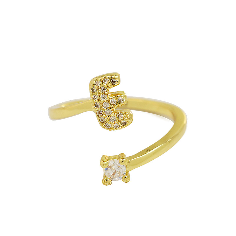 Gold Initial Ring for Women - Adjustable A-Z Alphabet Ring with Beads or Crystals - Personalized Name Jewelry for Everyday Wear, Graduation Season Gift or Special Occasion