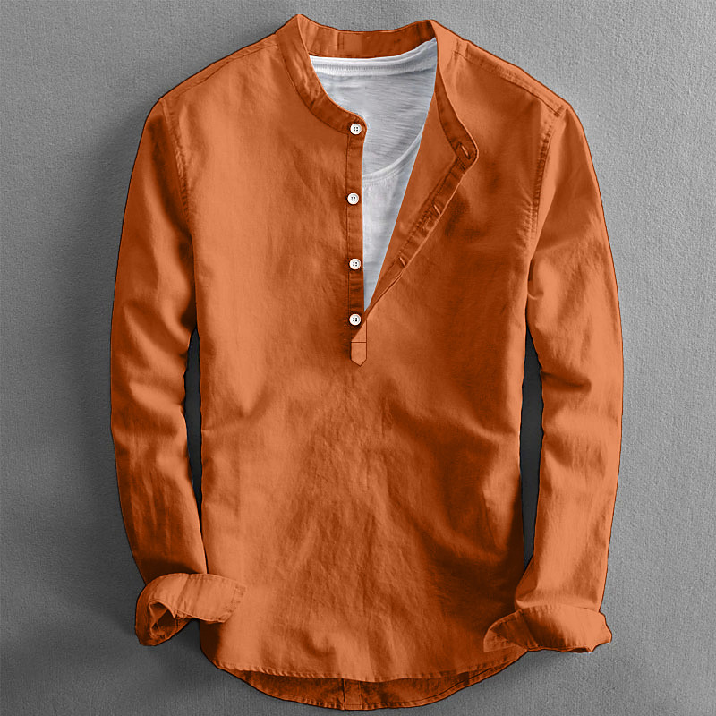 Men's Popover Shirt Summer Shirt Beach Wear Casual Shirt Band Collar Shirt Plain Vacation Casual Black White Pink Orange Long Sleeve Collar Spring Summer Clothing Apparel