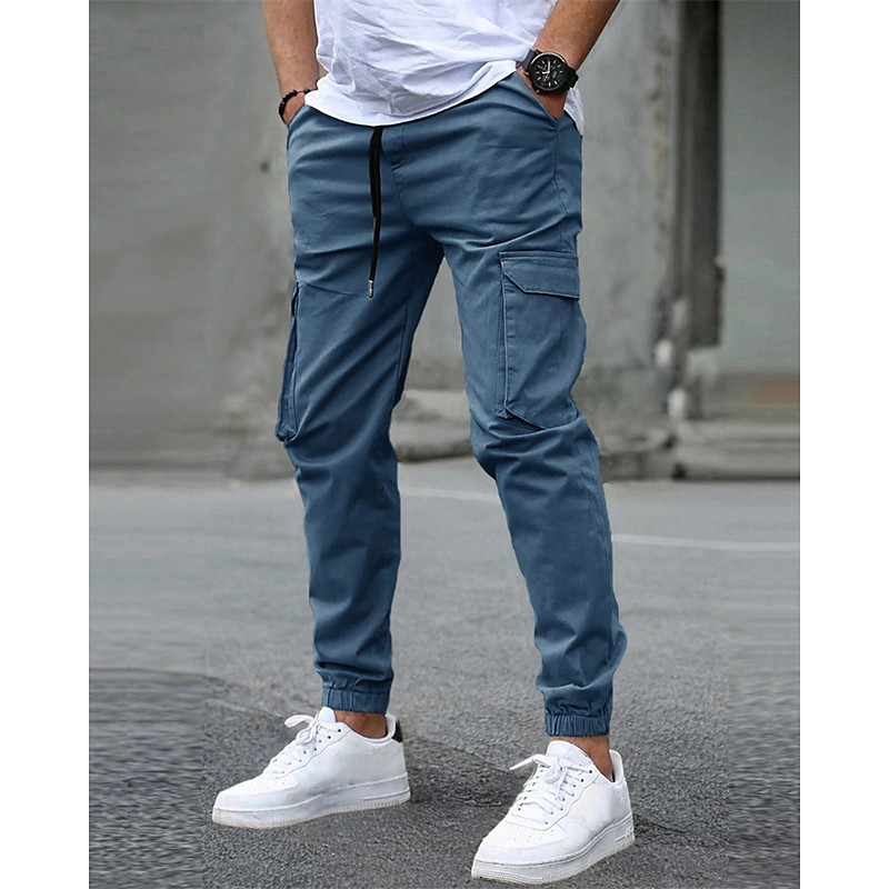 Men's Cargo Pants Joggers Trousers Drawstring Elastic Waist Multi Pocket Plain Wearable Outdoor Daily Camping Hiking Fashion Classic ArmyGreen Black