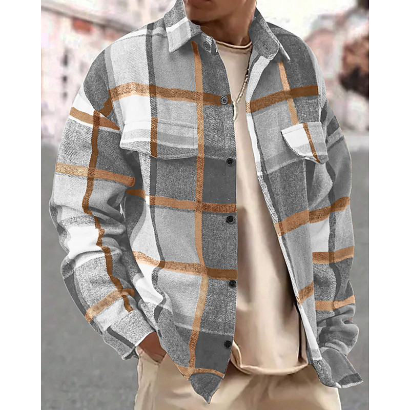 Men's Shirt Jacket Casual Jacket Vacation Daily Thermal Warm Pocket Spring Fall Plaid Fashion Classic Lapel Regular Dark Gray Yellow Orange Light Grey Rose Jacket