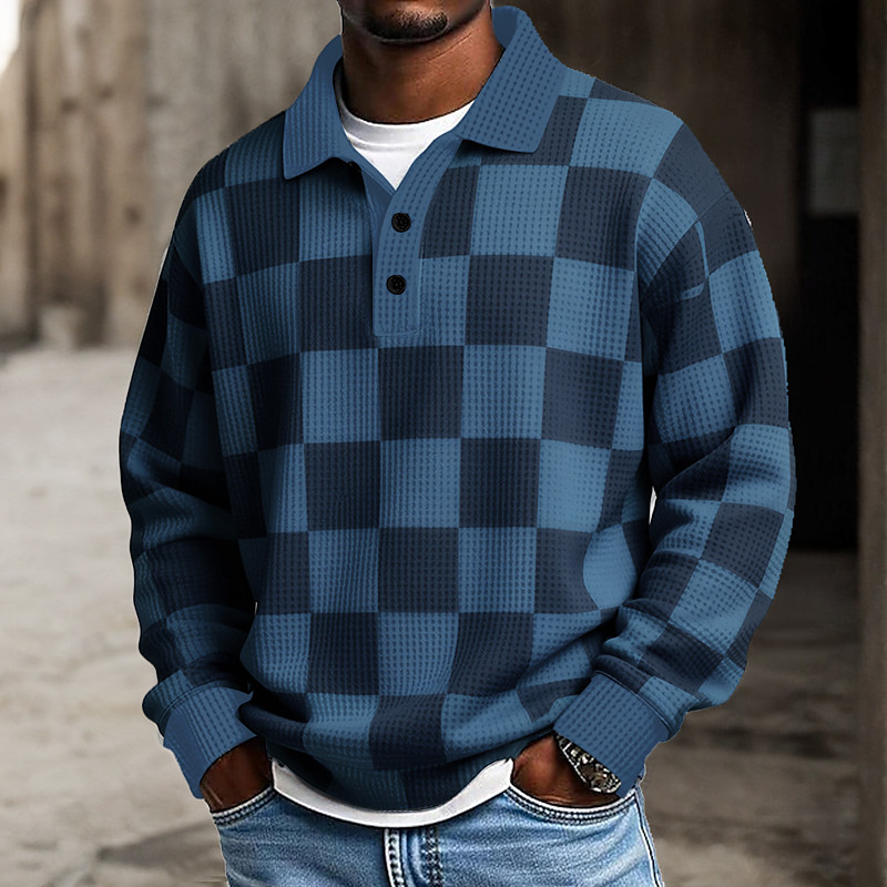 Men's Plaid Color Block Polo Textured Long Sleeve Polo Shirts Lapel Casual School Athleisure Daily Wear 3D Print Spring Fall Winter Blue Brown Green