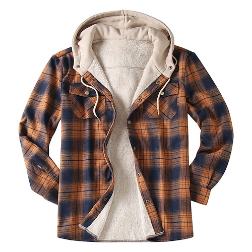 Herren Winterjacke Gepolstert Shacket Täglich Urlaub warm Wasserdicht Tasche Herbst Winter Plaid Modisch Klassisch Kargen Standard Schwarz Wein Marineblau Himmelblau Orange Jacken