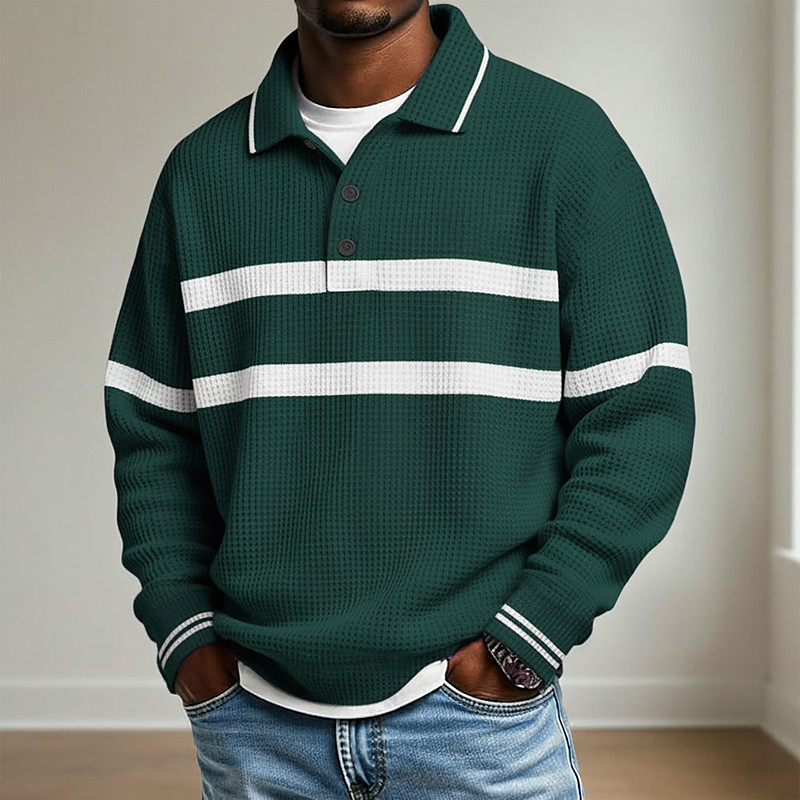 Per uomo A righe Polo da rugby Polo a maglia intrecciata Manica Lunga Magliette polo Camicie con Colletto Casual All'aperto Athleisure Stampa 3D Primavera Autunno Inverno Nero Blu Verde