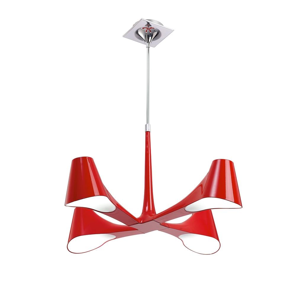 Ora Telescopic Convertible To Semi Flush 4 Light E27 Gloss Red/White Acrylic/Polished Chrome Mantra