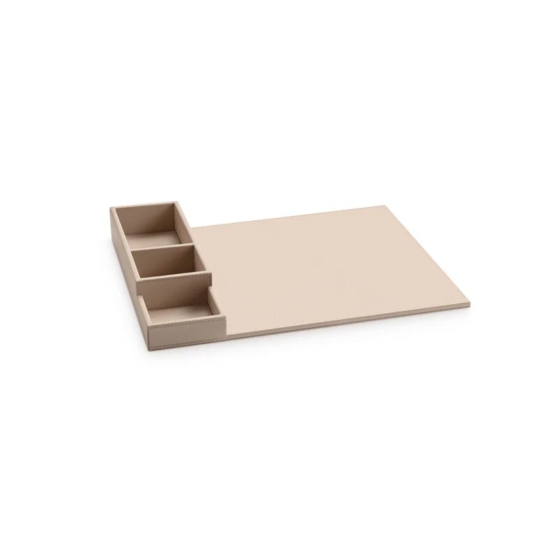Willkommenstablett SNAP Haupttablett mit Beilagenbehälter aus Kunstleder Beige mit Wasserkocher STAR 0,5 L Edelstahl und 2 weißen Porzellantassen