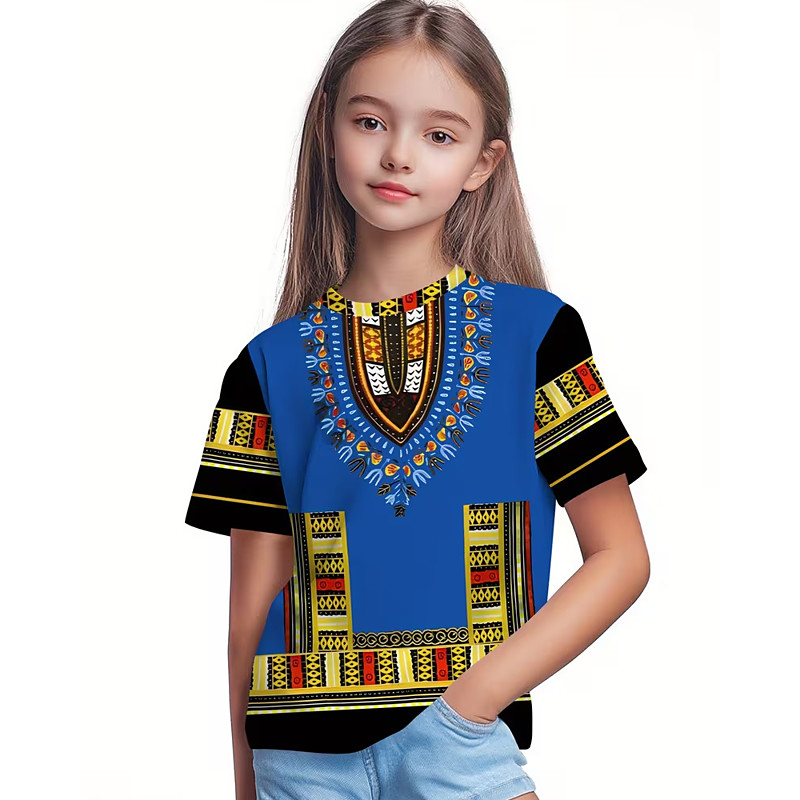 100% Cotton Carnival Costume 2026 Kids Girls' Blue Black White Graphic Cartoon T shirt Tee Crew Neck Short Sleeve Vacation Sports Outdoor Dailywear Sports Casual Printing Summer Spring
