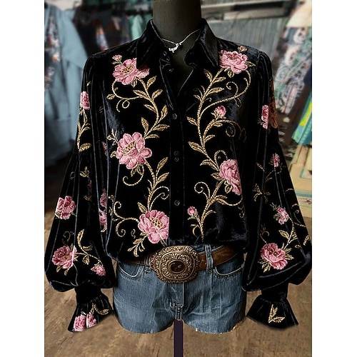 Capodanno Per donna Camicia Vintage Tropicale Elegante Top lunghi Ospite di nozze Abbigliamento da sera Ferie Rosa Rosso Blu Reale Azzurro cielo Oro Autunno Inverno