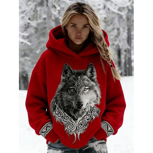 Per donna Felpa con cappuccio Grafico Animale Casual Manica Lunga Con Cappuccio Top Regolari Casuale Abbigliamento da sera Streetwear Stampato Blu Bianco Giallo Rosa Rosso Primavera Autunno Inverno