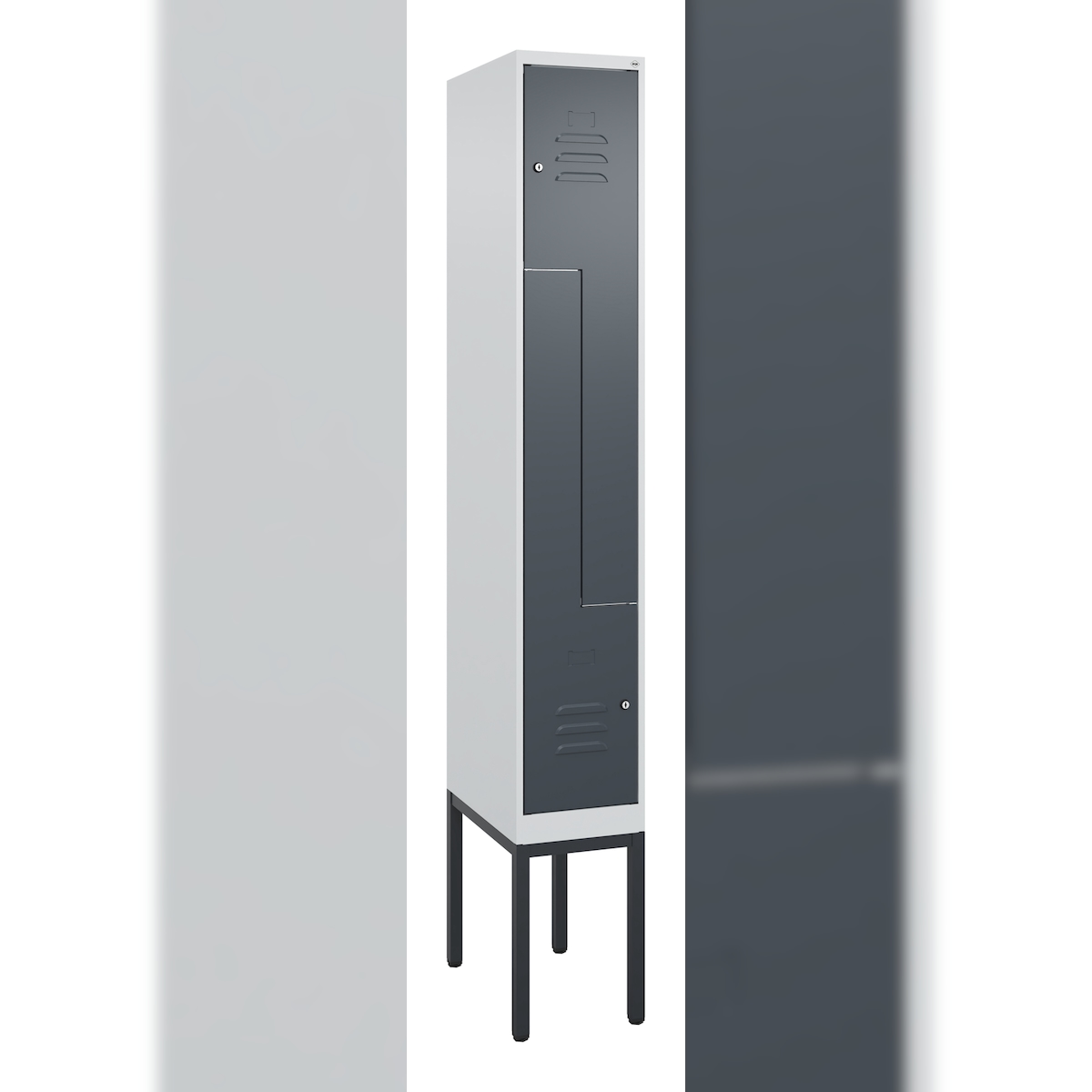 C+P Z-Spind Classic PLUS, Gestell, 2 Abteile, HxBxT 212x30x50cm, Zylinderschloss, Hellgrau/Anthrazit von PROREGAL