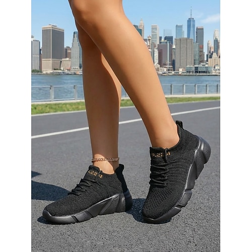 Scarpe da corsa da donna bianche in maglia – scarpe sportive Flyknit leggere e traspiranti, stile sportivo casual moderno per donna, perfette per correre, camminare, allenarsi in palestra e per l'uso