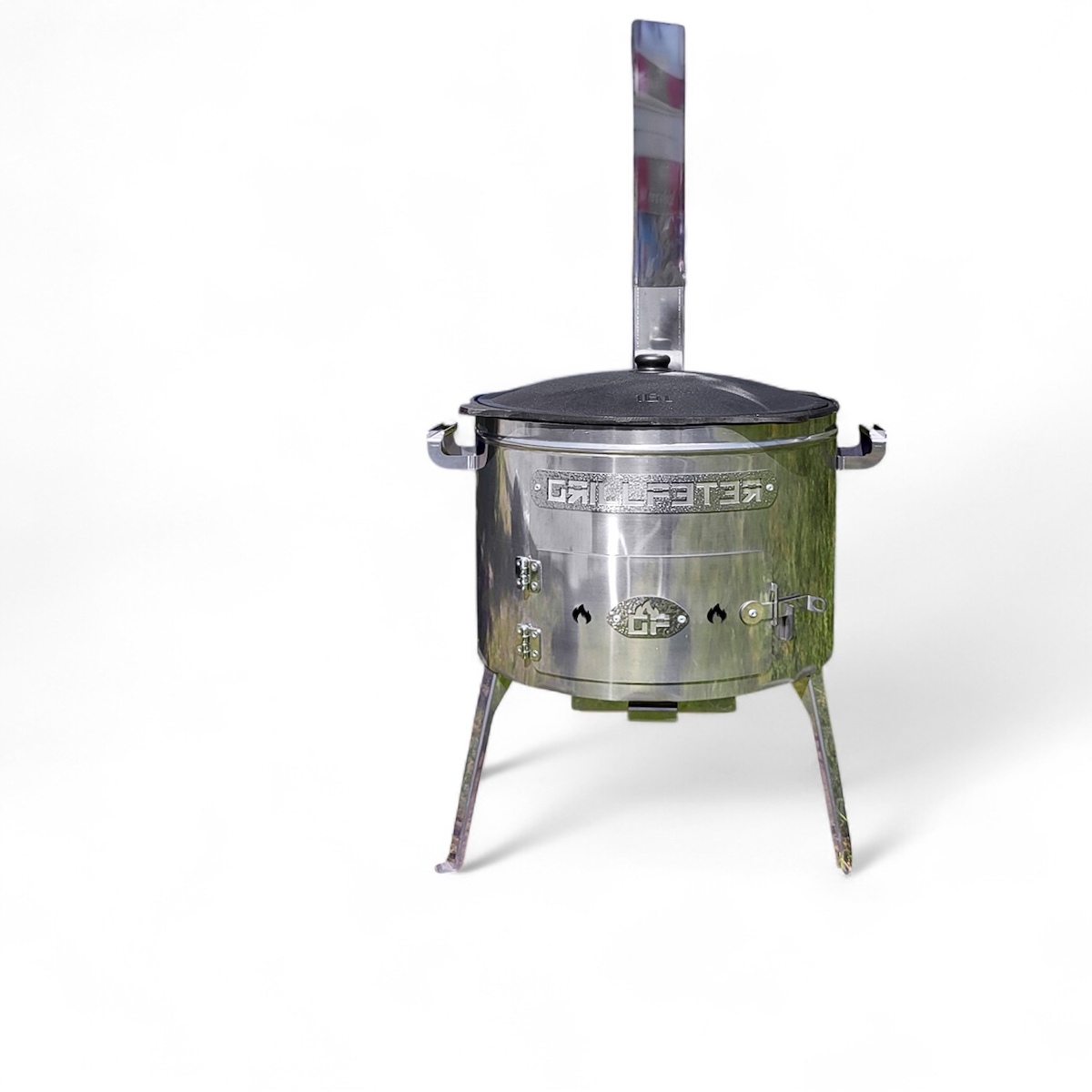 Grillpeter Utschak aus Edelstahl 2mm mit Rauchrohr Timur mit Kazan aus Gusseisen 16L