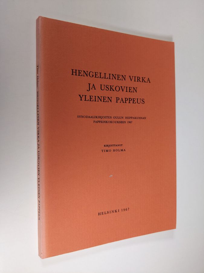 Timo Holma : Hengellinen virka ja uskovien yleinen pappeus : Synodaalikirjoitus Oulun hiippakunnan pappeinkokoukseen 1967