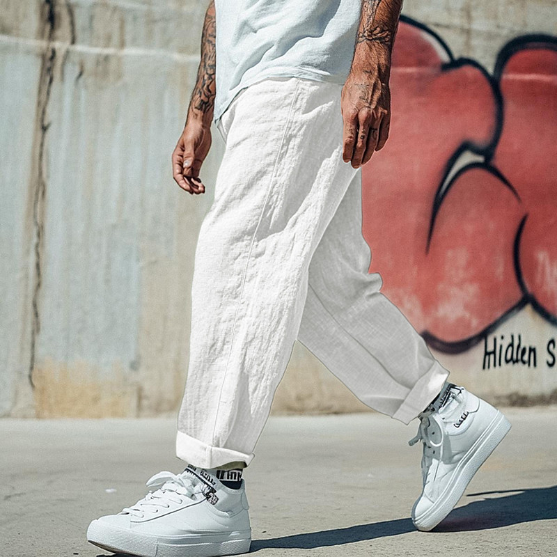 Men's Linen Pants Trousers Summer Pants Baggy Pants Beach Pants Pocket Elastic Waist Plain Comfort Breathable Daily Outdoor Beach Vacation Fashion Black White